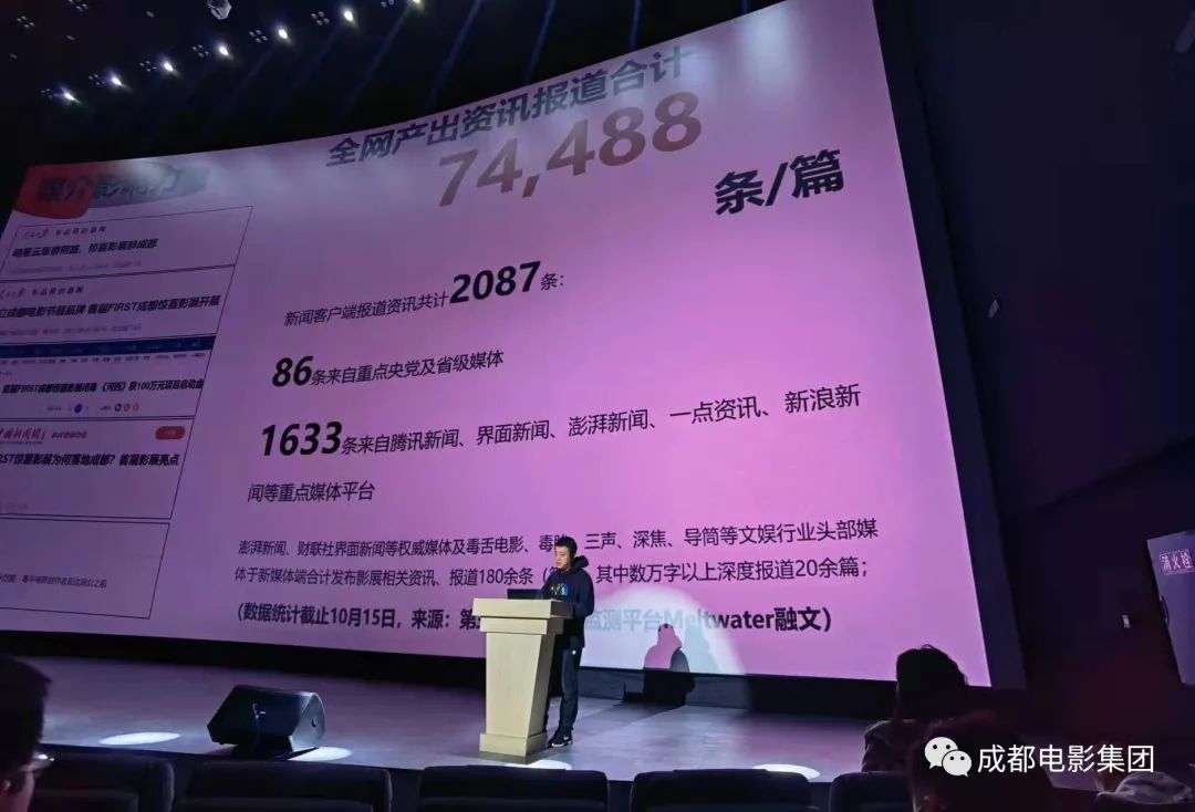 年終大會上“FIRST成都驚喜影展”項目由金沙院線董事長賴崇雷同志對全體員工進行分享和介紹,總結此次項目成果及收獲。